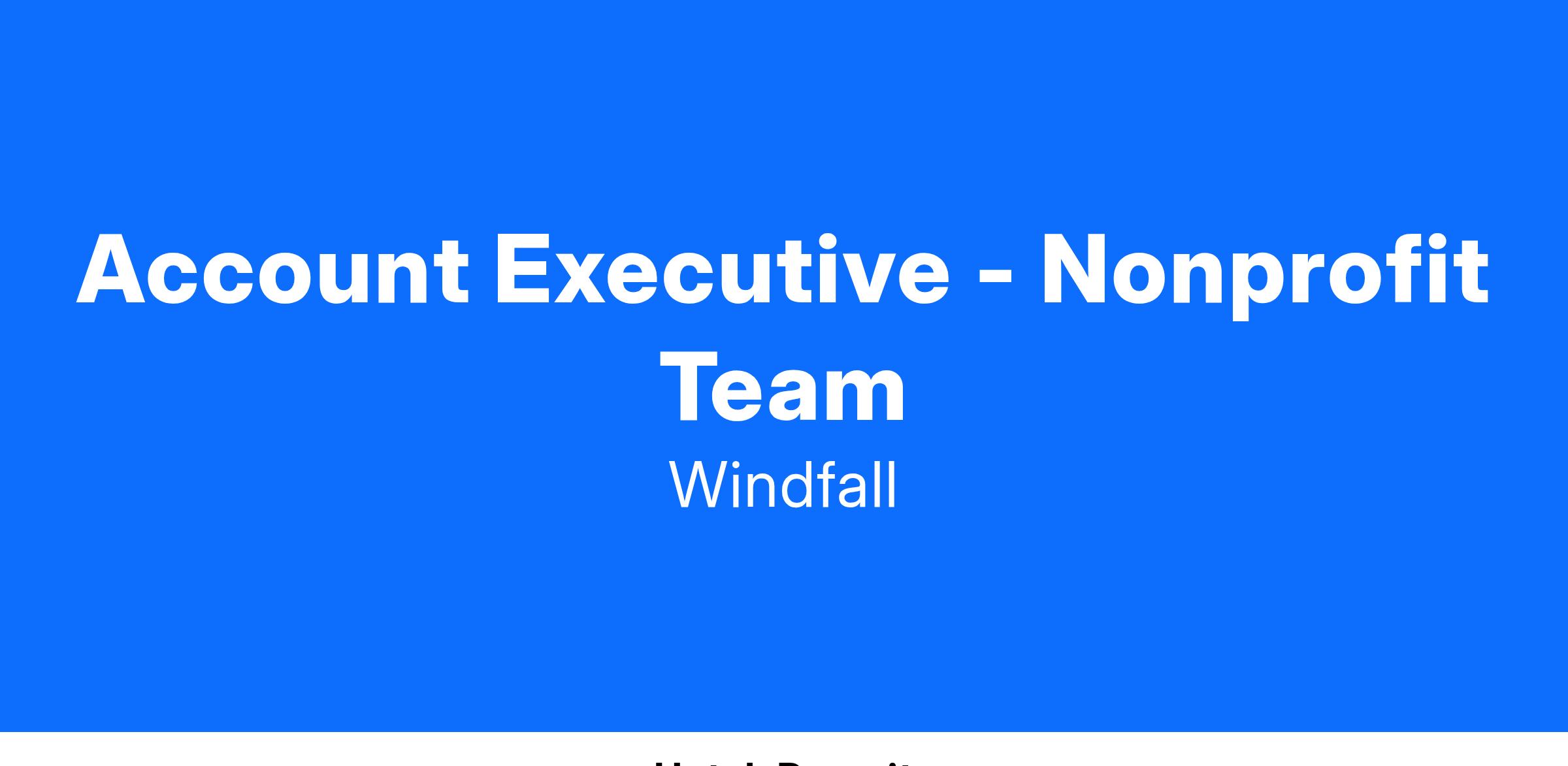 As an Account Executive on the Nonprofit team, you will be responsible for driving new business and building on our already impressive list of customer logos across a variety of industries. Innovative organizations use Windfall, including leading Healthcare organizations like Providence Health and Services, Cedars Sinai, Boston Children’s Hospital, leading Higher Education organizations like University of Michigan and University of Minnesota, and national organizations like Make-A-Wish America, Habitat for Humanity International, and Sierra Club. Windfall helps these customers market to and engage their donors and customers. As the face of our sales organization, you will be expected to sell our industry leading data enrichment offerings to customers through a consultative sales engagement, disrupt previously held notions when necessary, and build consensus for Windfall across the customer’s organization to secure deals.