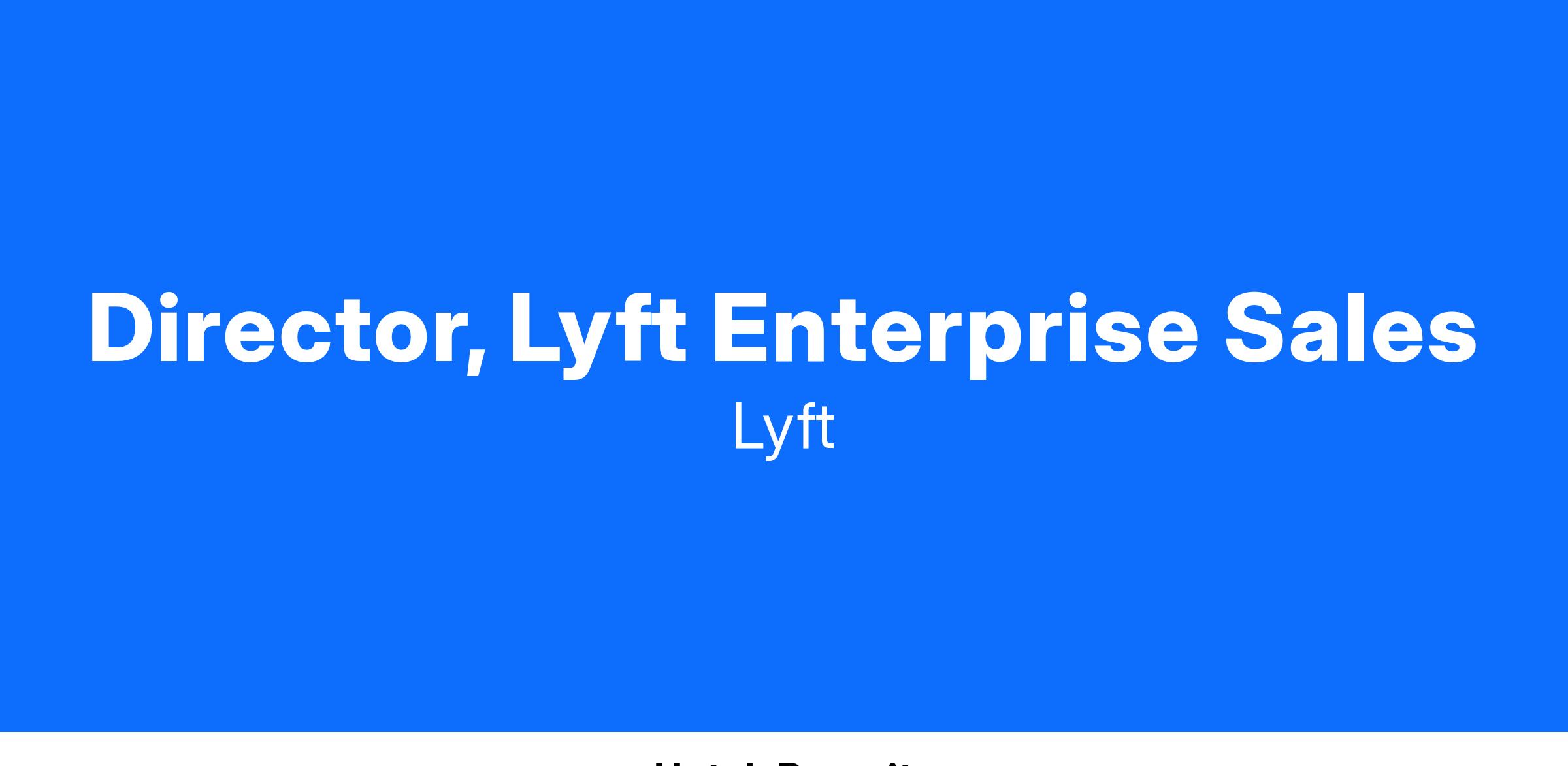 We are seeking an experienced Director of Enterprise Sales to lead a team of Account Executives and Account Managers. In this role, you'll spearhead a high-performing sales team focused on corporate commute, business travel, and courtesy rides for both Fortune 500 companies and thousands of small-to-medium businesses. You'll drive team development, ensure world-class customer service, and collaborate across the Lyft Business organization and cross-functional teams to achieve segment-level goals.