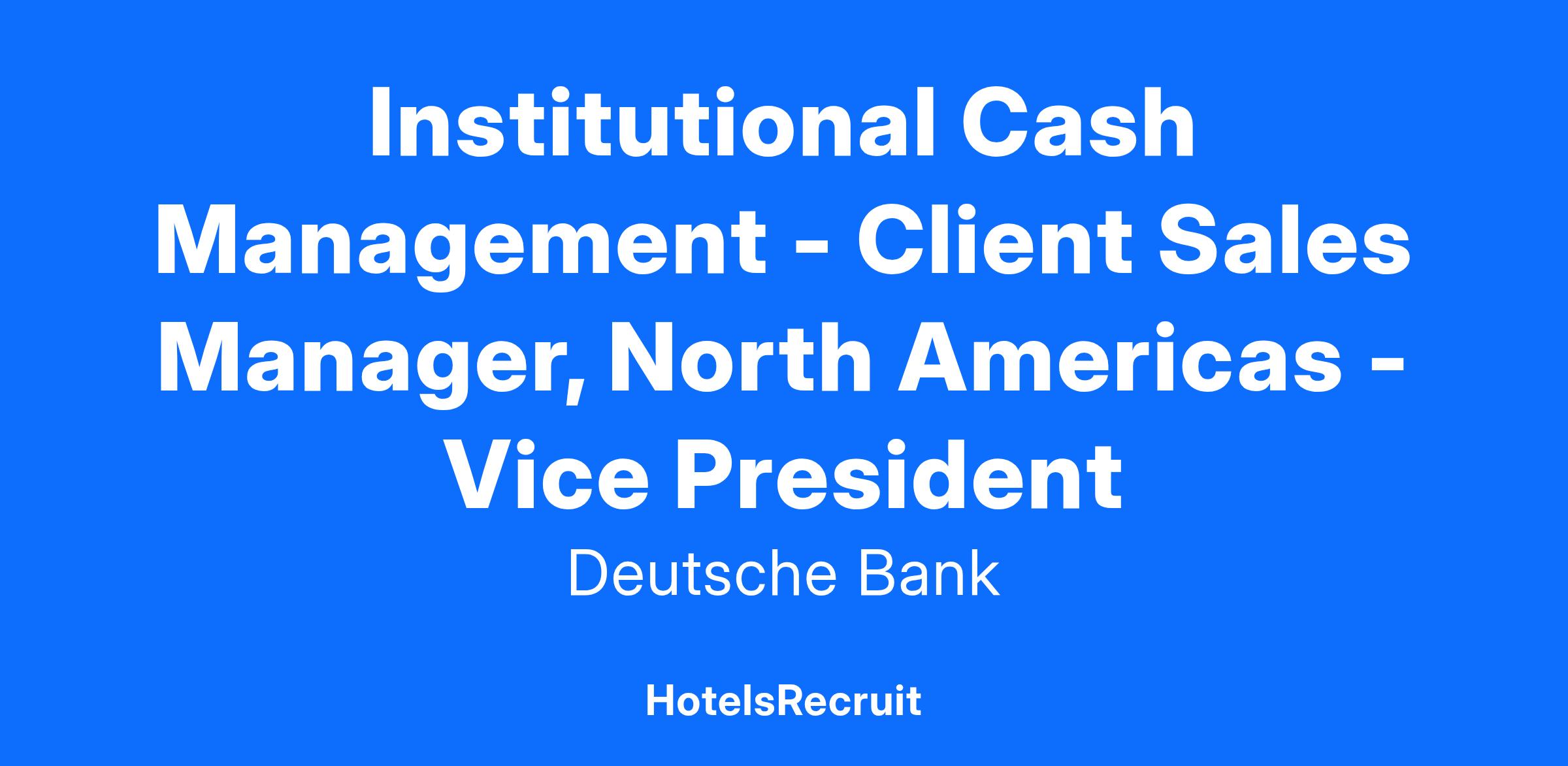 Job Title Institutional Cash Management - Client Sales Manager, North Americas
