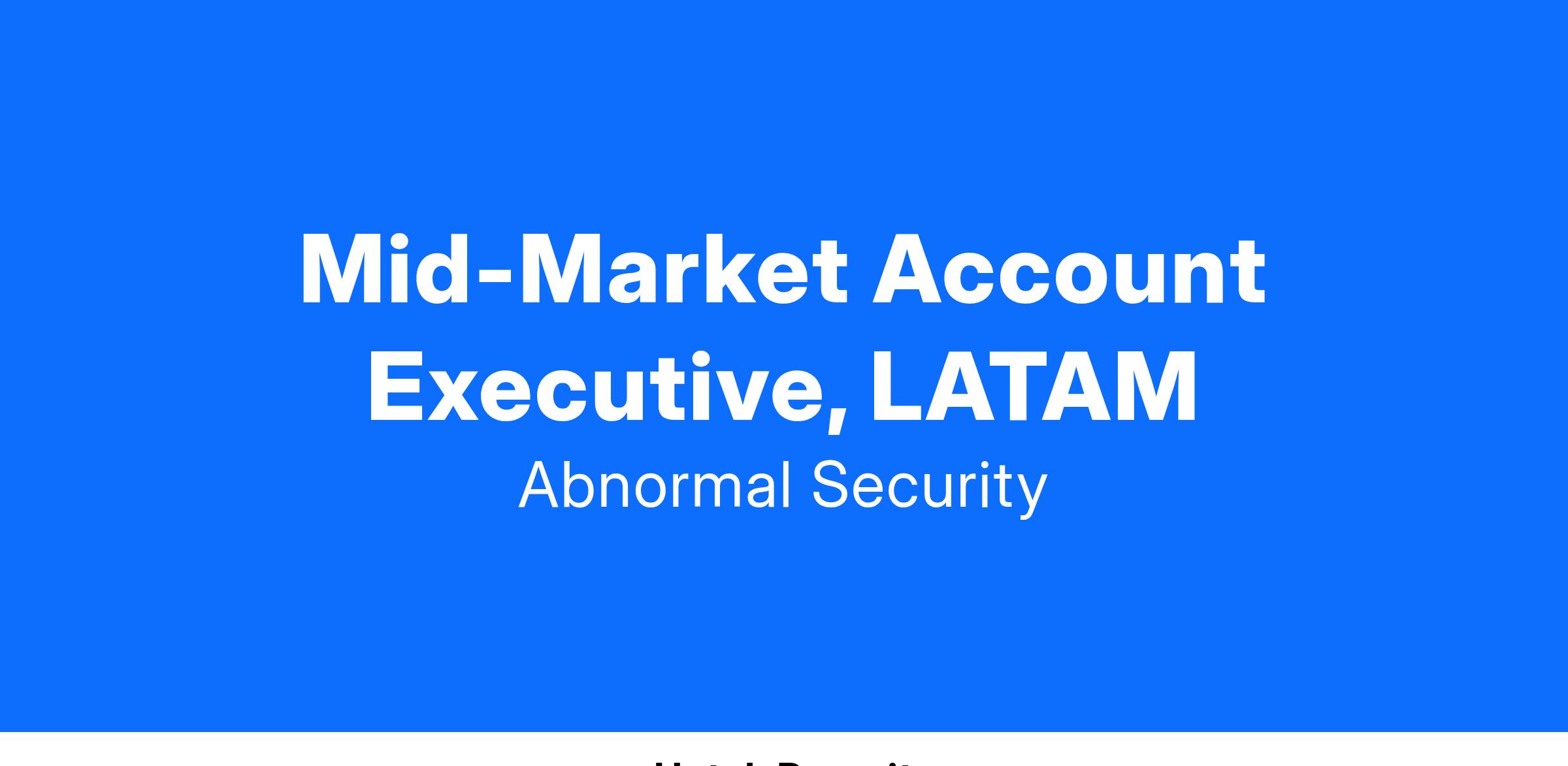 Abnormal Security is looking for a Mid-Market Account Executive to join our Sales org. The Mid-Market sales team is responsible for bringing new, small to medium-sized business into Abnormal’s portfolio of customers. This is a full-cycle sales role, working the deal cycle from prospect to close for accounts located in your territory. The ideal candidate will have a hunter mentality, experience in & a passion for cybersecurity, team selling experience, and be ready to hit the ground running.