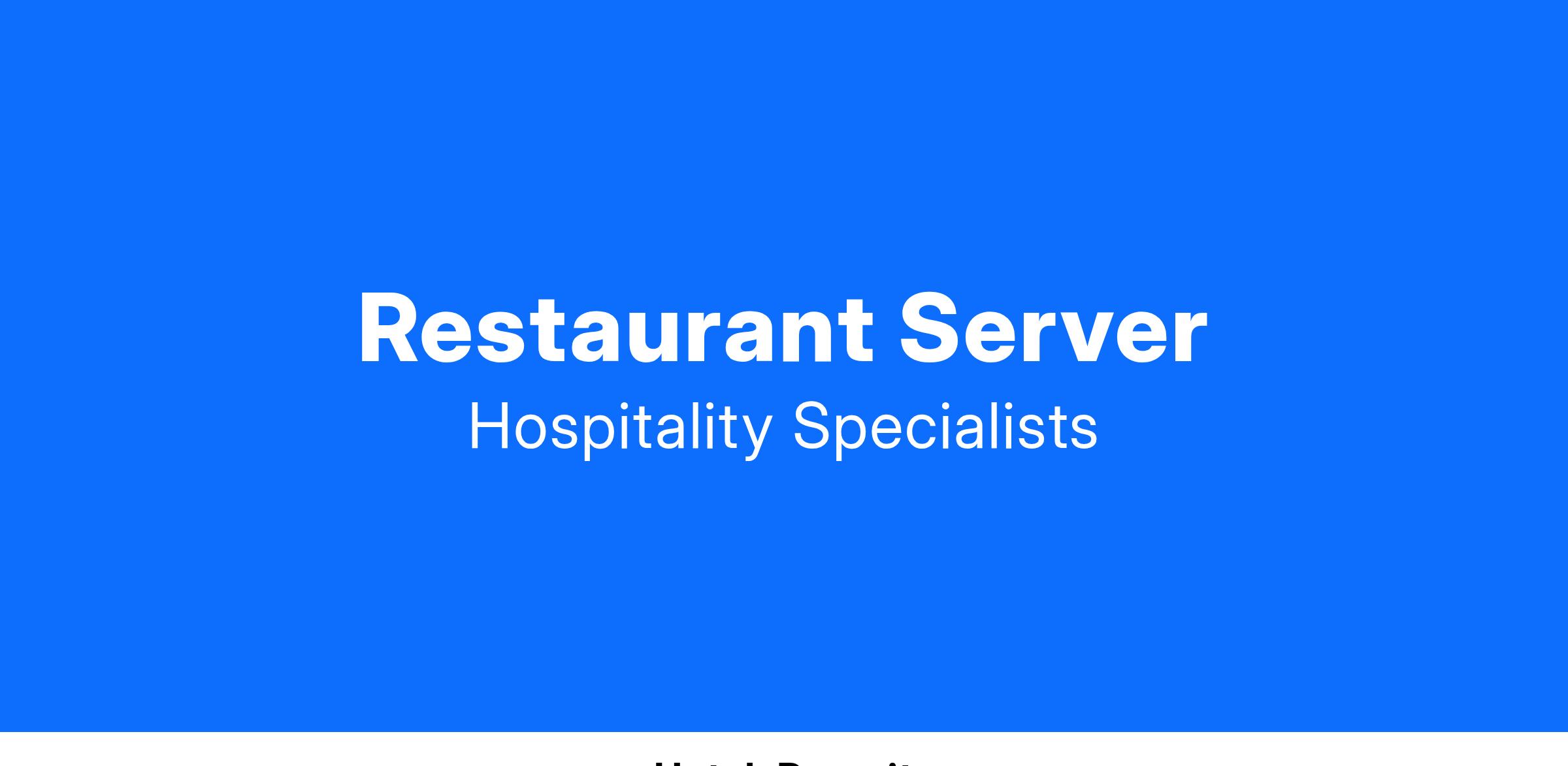 EXPERIENCE: Restaurant serving experience required. Prior hotel and restaurant serving experience preferred.
