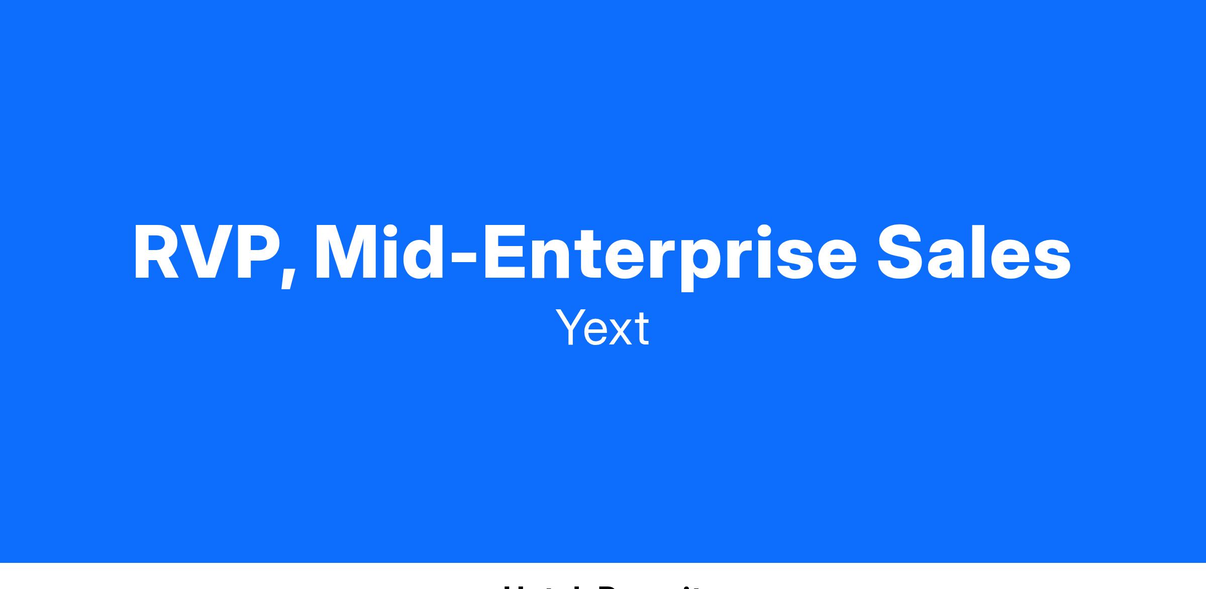 Yext is seeking a Regional Vice President (RVP) for our Mid-Enterprise Division who can help us continue to deliver best in class performance and availability to clients across the United States. The role will be responsible for managing a team of sales reps generating revenue by closing sales directly with clients and working with the account management team so secure renewals and upgrades, mainly via telesales contact.