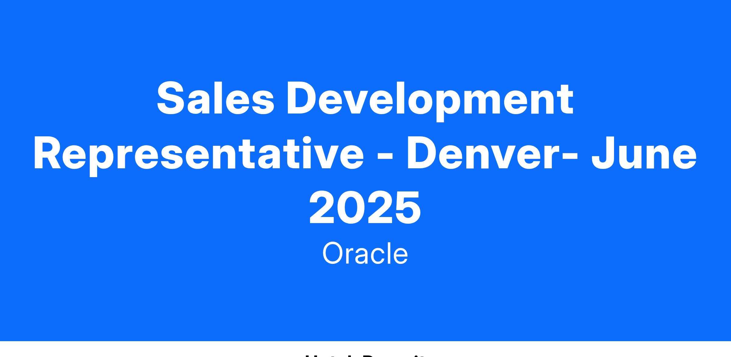 As a Sales Development Representative, your initial training consists of a multi-week, comprehensive curriculum where new hires begin to learn consultative selling skills and Oracle solutions.