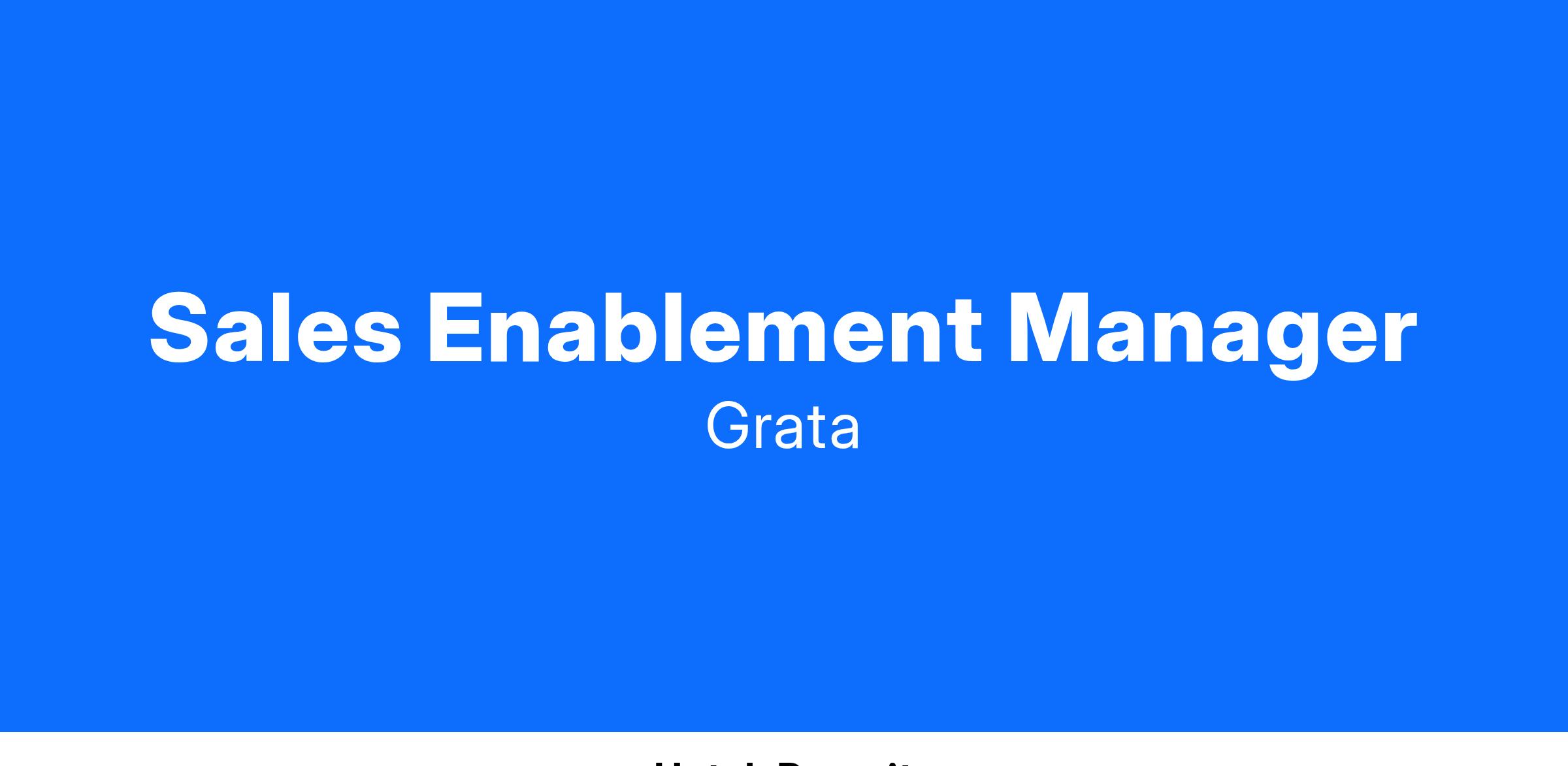 Grata is growing quickly and we are looking for our first entrepreneurial Sales Enablement Manager to help drive scalability and repeatability across our sales team. As a part of our fast-growing sales team, you should be a firm believer in our unique product offering and take a consultative approach to developing the content, processes and tools required to support our expansion.