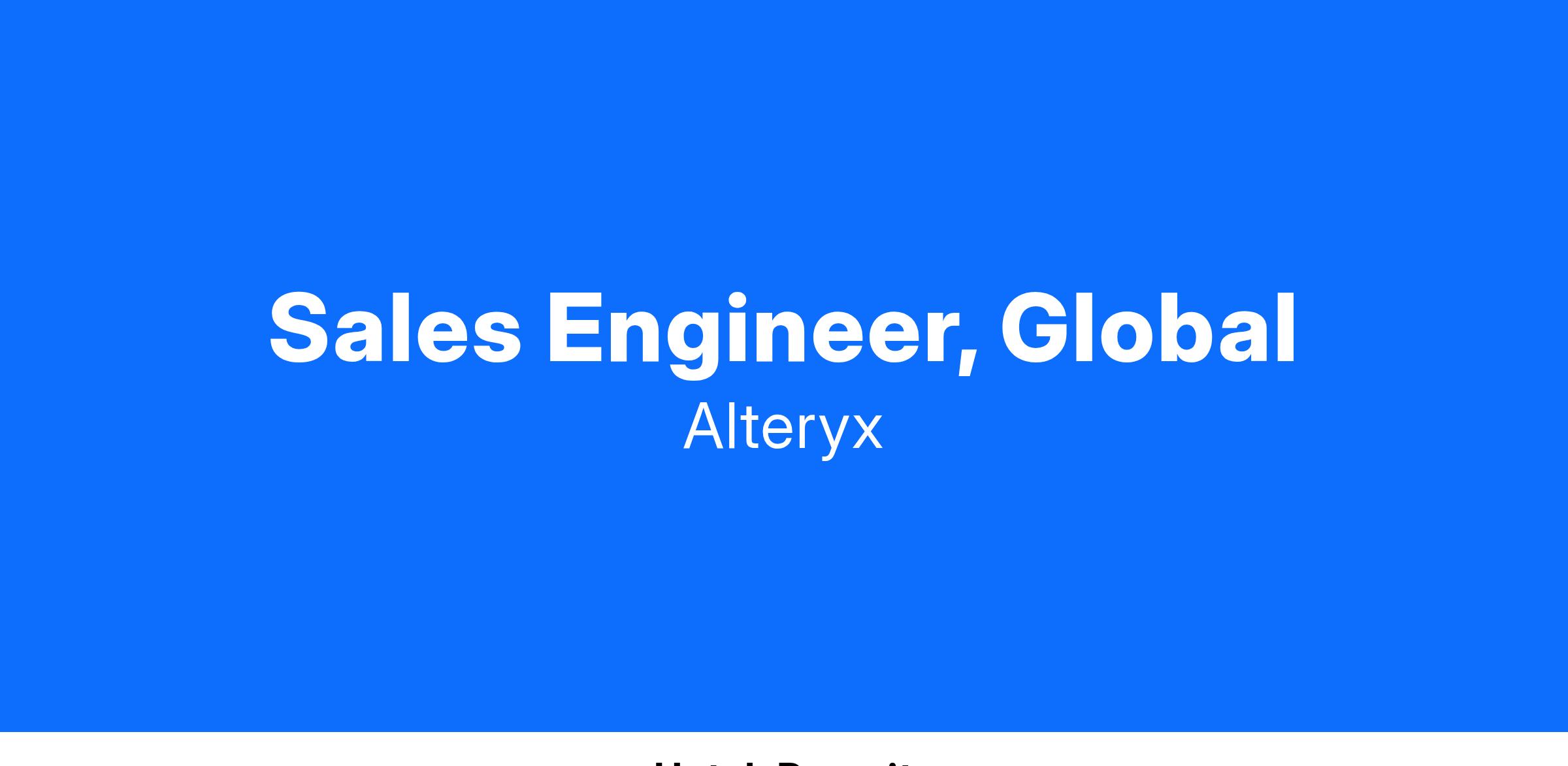 The Senior Sales Engineer at Alteryx plays a pivotal role in the sales process by bridging the gap between technical capabilities and customer needs, by translating the Alteryx platform features to customer business value. This role involves working closely with the sales team to provide technical expertise, product demonstrations, and solution recommendations tailored to prospective clients. The ideal candidate will possess a deep understanding of Alteryx products, data analytics, and have excellent communication skills to effectively articulate the value of our solutions.