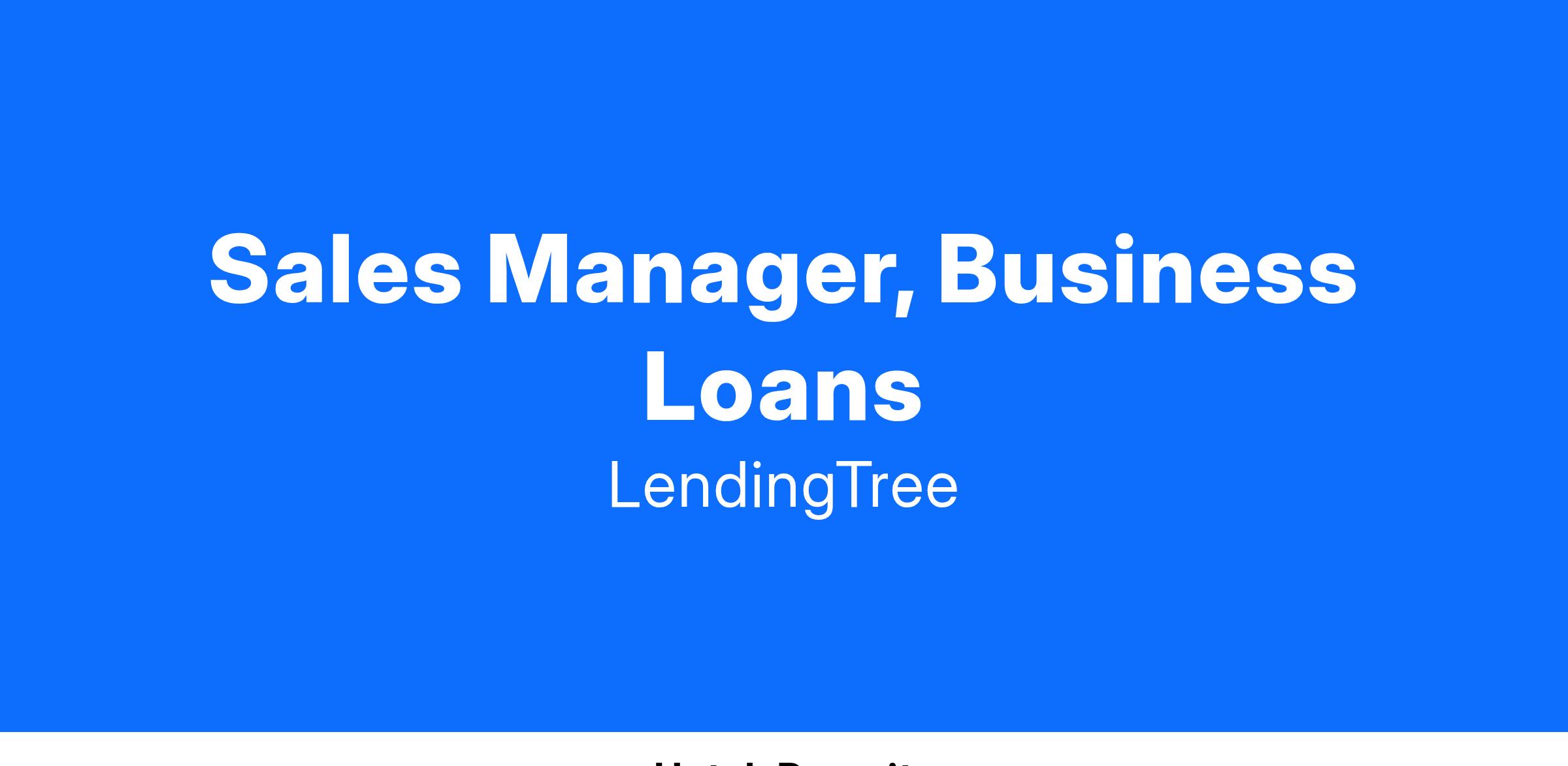 LendingTree is looking for a seasoned leader with a broad set of skills and experiences including sales team management, client relationship management, and a demonstrated ability to analyze, interpret, and sell using quantitative data. The primary responsibility for the Sales Manager is to achieve quarterly sales goals. Candidates for this position should have had experience achieving a minimum of a $20M+ annual sales goals and the ability to easily handle much larger ones.
