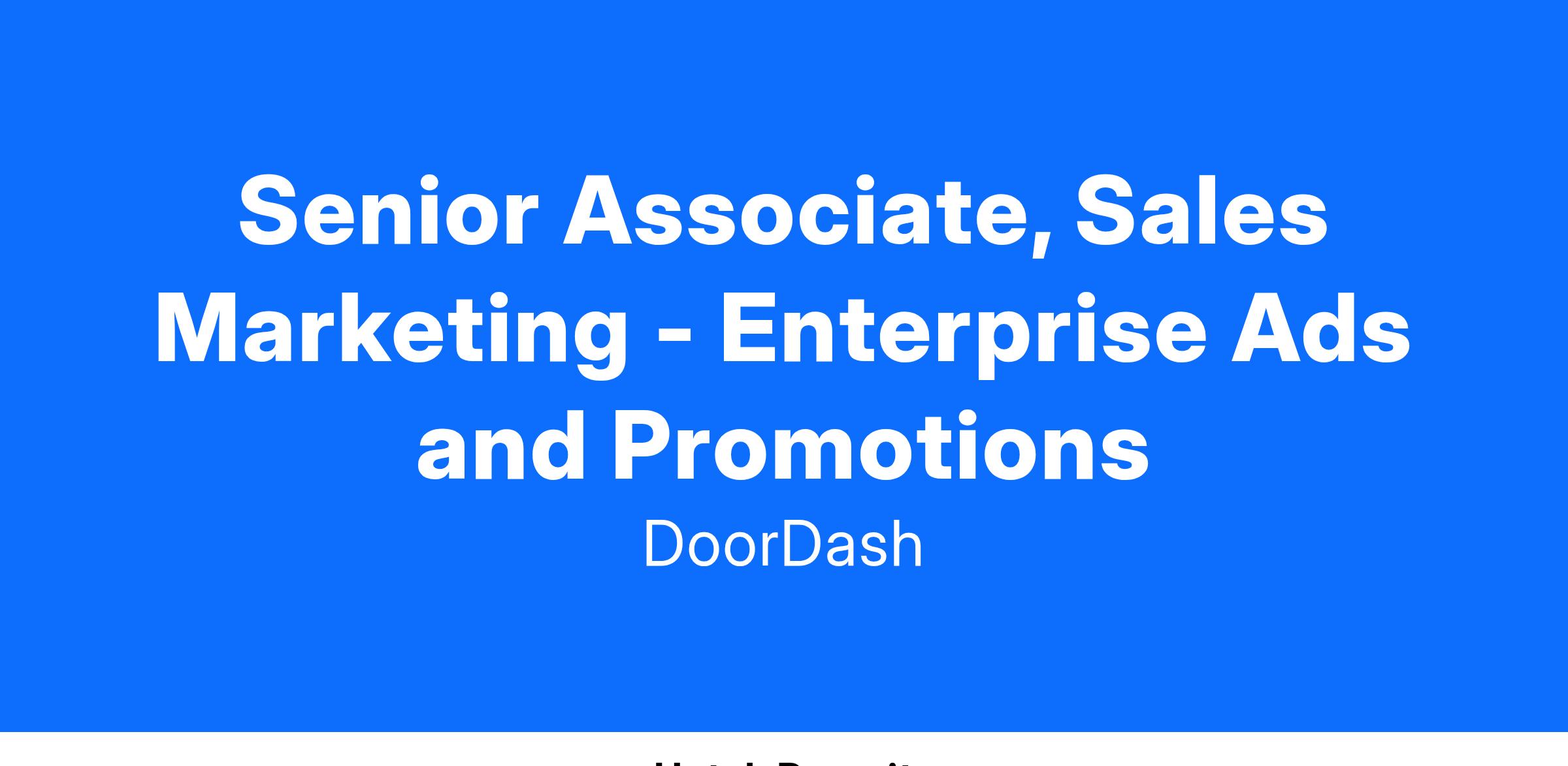 As Senior Associate, Sales Marketing, you will ideate and create scaled content to accelerate the Ad Sales teams and businesses across Restaurants and Consumer Package Goods (CPG). In this role, you will focus on the go-to-market and positioning of our highest-priority solutions, with an acute appreciation for the needs and context of Enterprise Advertisers. You will maintain collateral to empower partners to sell into key verticals and drive adoption of DoorDash’s Ads & Promotions offerings, such as pitch decks, demo videos, partner selling, and product guides. You will report to the Senior Manager, Sales Marketing in our Enterprise Ad Sales organization, and you will also work cross-functionally with marketing, analytics, and product to innovate our future approach and solutions.