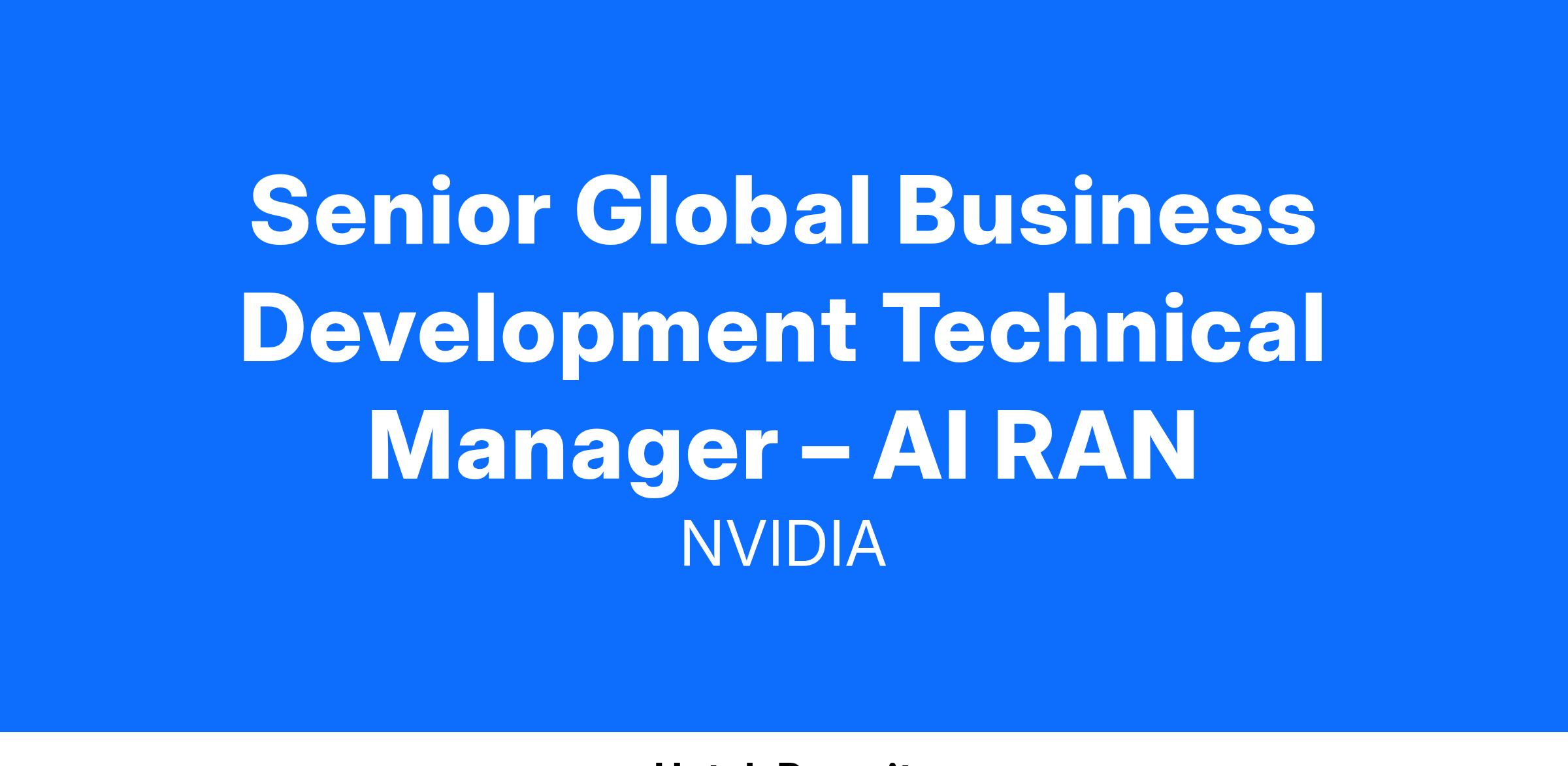 NVIDIA is the engine of modern artificial intelligence, the biggest technology breakthrough of our time, and is transforming industries. We are seeking an Industry Business Development (IBD) for AI RAN to join our outstanding team preferably in Santa Clara, CA, USA. As an IBD for AI RAN, you will have a vital role evangelizing the adoption of AI RAN with Telecommunication Carriers around the globe and with RAN ecosystem partners. This position offers a distinctive opportunity to help drive the adoption of the next generation RAN infrastructure that will support AI in parallel to the RAN, within the RAN itself and on top of the RAN.