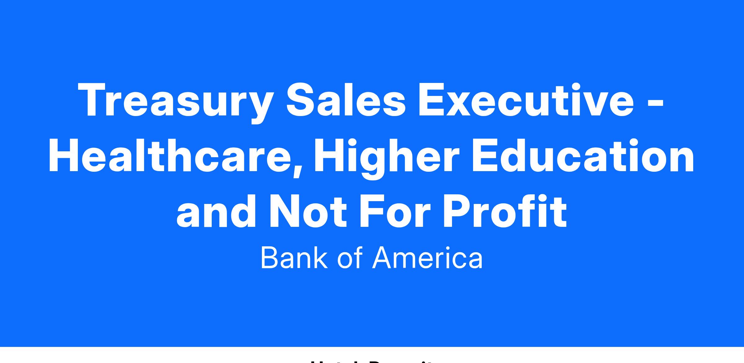This job is responsible for leading a nationwide team of Treasury Sales Officers that manage a portfolio of clients within the Global Commercial Banking division, specifically focused on not-for-profit healthcare, higher education and charitable organizations. Job expectations include leading financial performance of the group, strategic positioning of solution to the market, serving as executive sponsor on key relationships, building partnerships with business partners and key client decision makers, and providing product expertise to deliver effective solutions to clients.