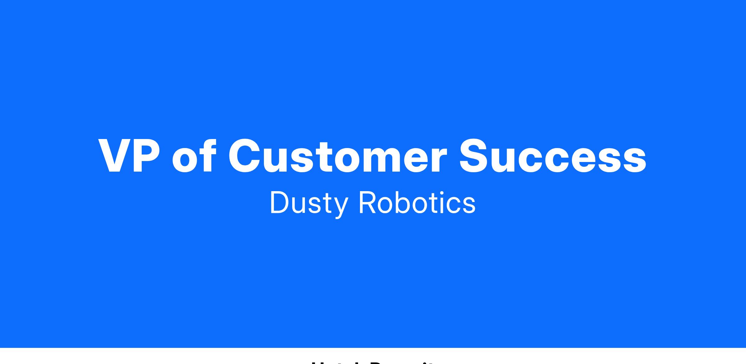We are looking for a VP of Customer Success to transform a team of customer success professionals to accelerate client utilization of our transformative product. You will create playbooks and strategies that enable customers to adopt Dusty successfully within their organizations by digitizing their processes and improving productivity in one of the largest sectors in the global economy: construction.